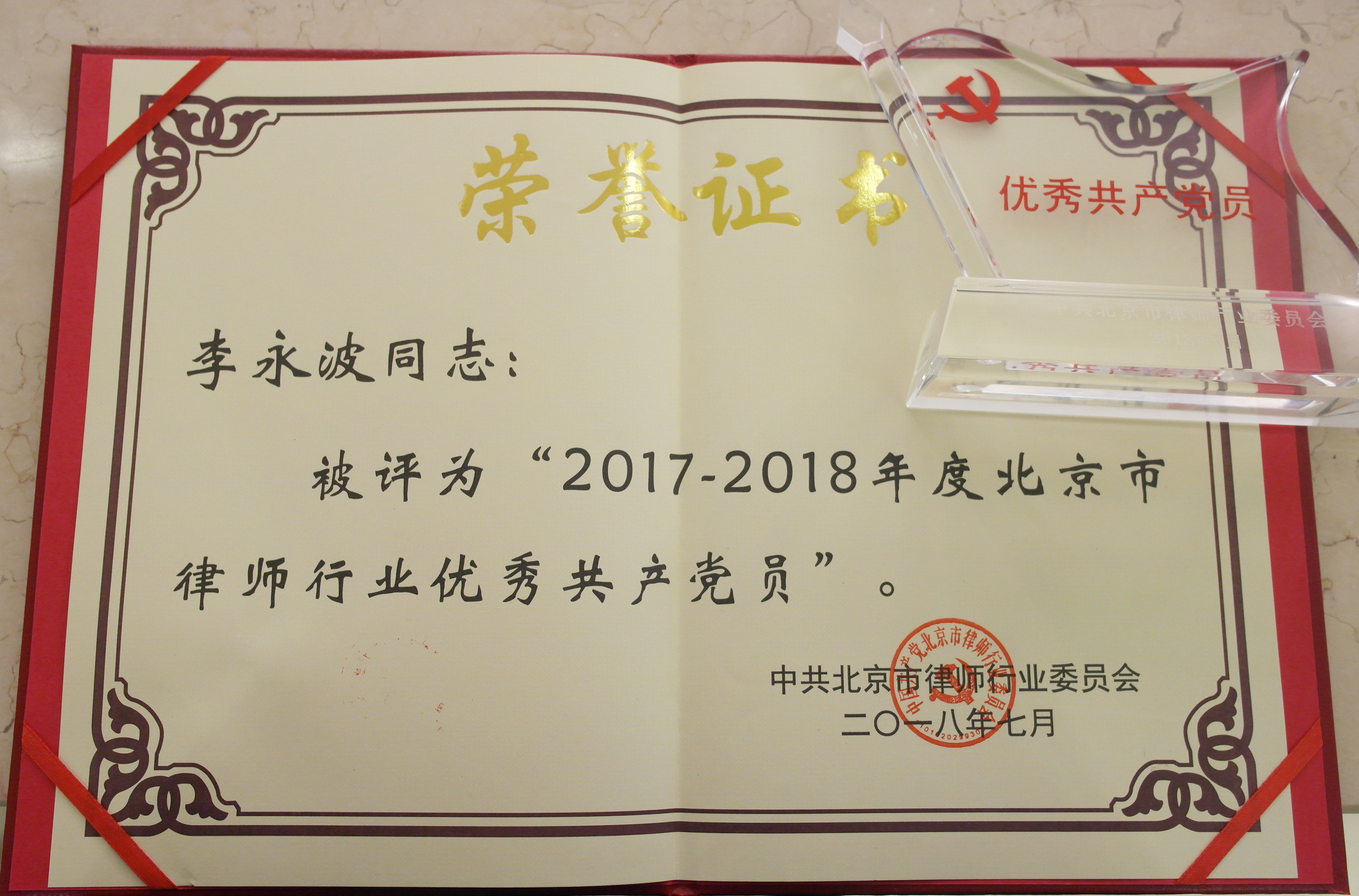 為進一步加強基層黨組織建設,切實發(fā)揮黨支部的戰(zhàn)斗堡壘和黨員的先鋒模范作用,北京市及各區(qū)律師行業(yè)黨委在律師隊伍中開展了先進黨組織、優(yōu)秀共產(chǎn)黨員、優(yōu)秀黨務工作者和黨建之友的評選活動。經(jīng)朝陽區(qū)協(xié)會黨委的綜合審核及評定,集佳律師事務所黨支部被授予“2018年度先進黨組織”殊榮,李永波律師、張海芳律師、王荷舒律師被授予朝陽區(qū)“優(yōu)秀共產(chǎn)黨員”榮譽稱號,此外,李永波律師還被評為“2017-2018年度北京市律師行業(yè)優(yōu)秀共產(chǎn)黨員”。