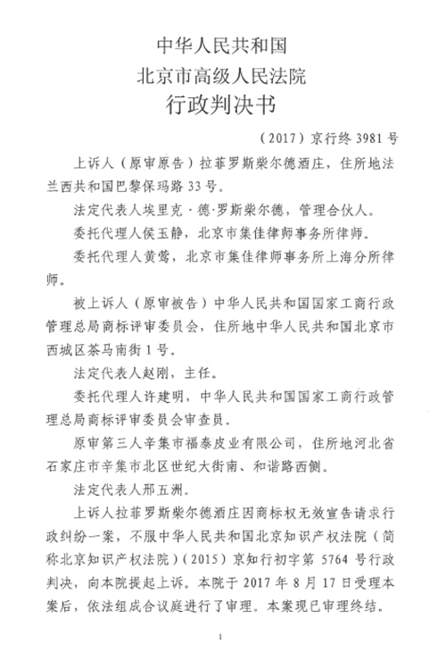 另附北京高院就本案做出的(2017)京行終3981號二審判決書: