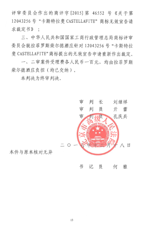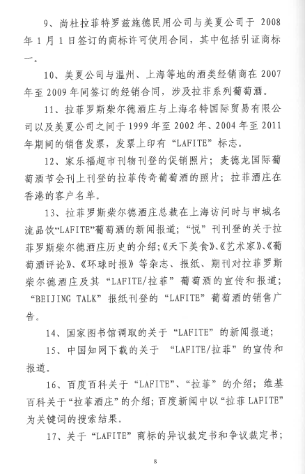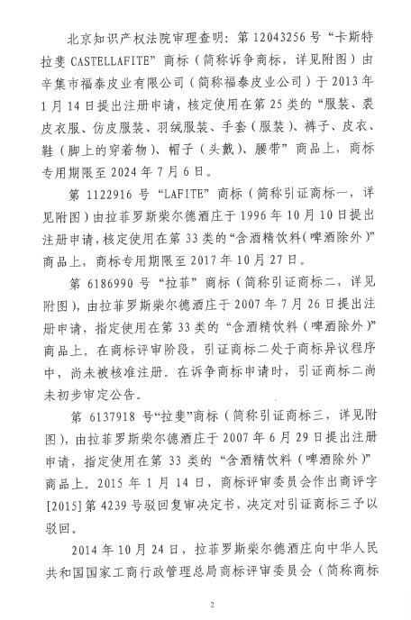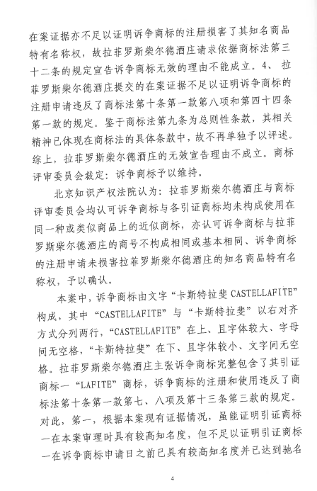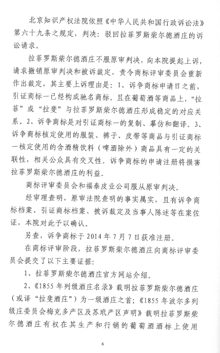 自2016年以來,商評委、北京知識產(chǎn)權法院已經(jīng)先后在十幾個裁定或行政判決中認定“LAFITE”為馳名商標,但大多還在行政訴訟程序之中。本案是首個終審判決,對“LAFITE”在中國的馳名商標保護之路,具有里程碑式的重要意義。