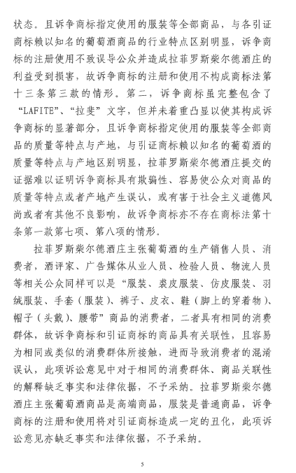 本案是一起適用“淡化”理論保護馳名商標的典型案例。在論理部分,法院指出,訴爭商標使用在服裝商品上,會使相關公眾聯(lián)想到引證商標,且會認識到使用訴爭商標的商品并非由拉菲羅斯柴爾德酒莊提供或與之存在特定關聯(lián)。也就是說,法院認為此時混淆、誤認的可能性并不存在。但是,這種狀況的存在依然會損害引證商標權利人的利益,因為引證商標的顯著性被淡化了,引證商標與其權利人之間的固定聯(lián)系被破壞了。