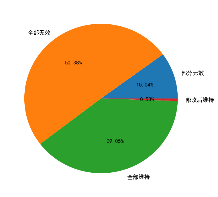 3.2 按分類號統(tǒng)計無效數(shù)量以及全部維持決定占比