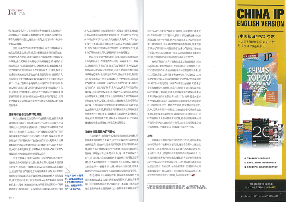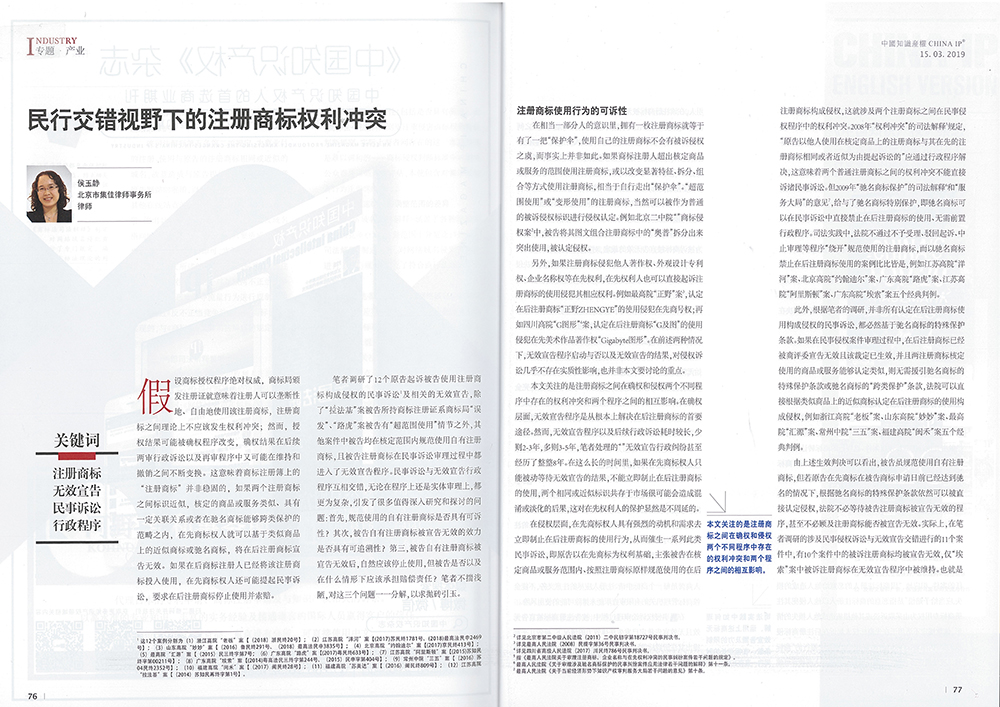 集佳文章《民行交錯(cuò)視野下的注冊(cè)商標(biāo)權(quán)利沖突》在《中國知識(shí)產(chǎn)權(quán)》發(fā)表