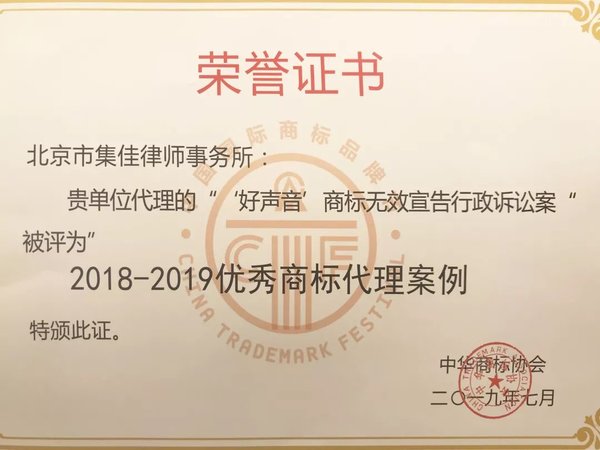 7月6日,第十一屆中國國際商標(biāo)品牌節(jié)在銀川正式拉開帷幕,各項(xiàng)活動(dòng)如火如荼地進(jìn)行著。在商標(biāo)典型案例評(píng)析論壇上,集佳再獲嘉獎(jiǎng),由集佳代理的“好聲音”商標(biāo)無效宣告行政案被評(píng)為“2018-2019優(yōu)秀商標(biāo)代理案例”。