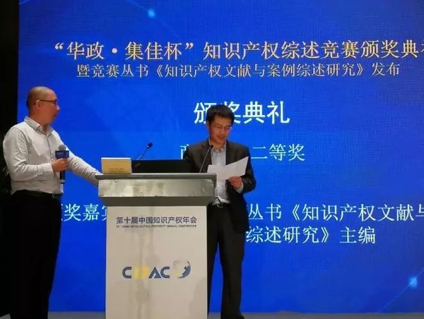 9月3日下午,在第十屆中國(guó)知識(shí)產(chǎn)權(quán)年會(huì)活動(dòng)期間,由華東政法大學(xué)知識(shí)產(chǎn)權(quán)學(xué)院主辦、知識(shí)產(chǎn)權(quán)出版社和北京市集佳律師事務(wù)所上海分所助力并協(xié)辦的第五屆“華政?集佳”杯知識(shí)產(chǎn)權(quán)綜述競(jìng)賽頒獎(jiǎng)典禮暨競(jìng)賽叢書發(fā)布活動(dòng)在杭州成功舉辦。