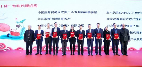 ▲集佳合伙人王艷江副所長(右六)領(lǐng)取“十佳專利代理機(jī)構(gòu)”榮譽(yù)證書