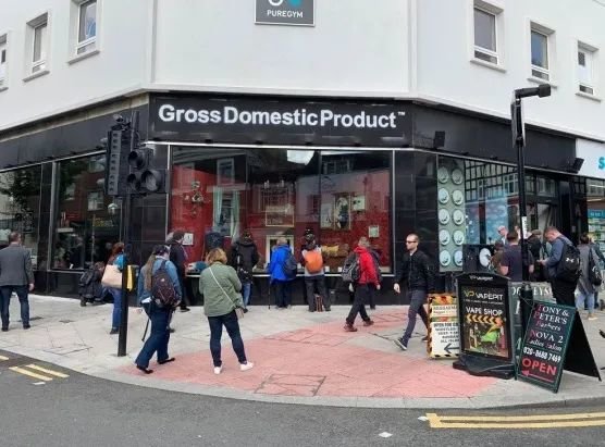 對此,PCOL辯稱不能僅因Banksy此前發(fā)表的“版權(quán)是為了保護失敗者”言論而否定其將作品申請注冊為商標(biāo)的權(quán)利,并援引歐洲法院在NEUSCHWANSTEIN案(案號C?488/16 P)中的觀點,認(rèn)為不能因為Banksy允許公眾無償使用《擲花者》便否定其申請商標(biāo)系出于善意。為表明Banksy確有使用擲花者商標(biāo)的意圖,Banksy在收到無效申請后還在英國大倫敦南側(cè)的城市克羅伊登設(shè)立了一家名為“Gross Domestic Product”的快閃店,用以展出包括《擲花者》在內(nèi)的涂鴉作品。但Banksy此后公開承認(rèn)這家商店只是為了在本案中取得有利裁定而設(shè)立的。