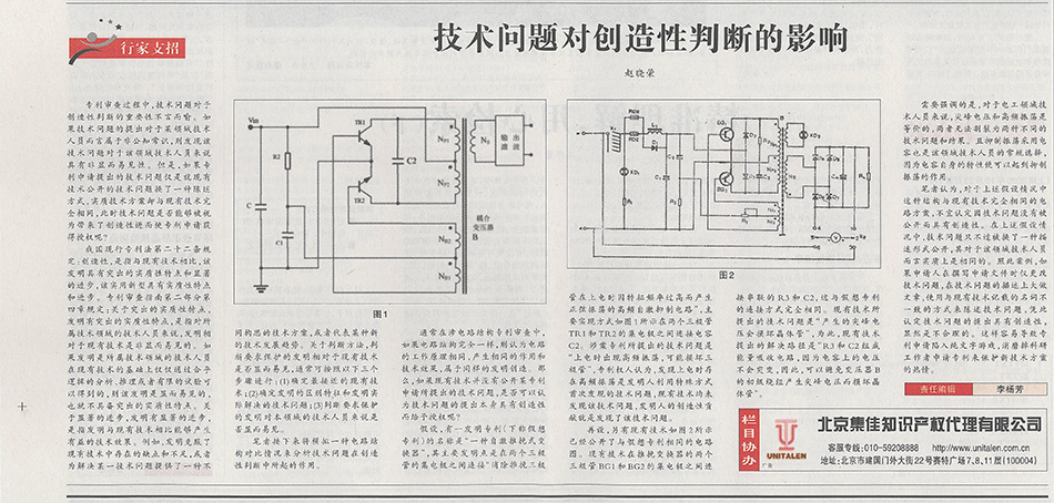 集佳文章《技術(shù)問題對創(chuàng)造性判斷的影響》在《中國知識產(chǎn)權(quán)報》發(fā)表