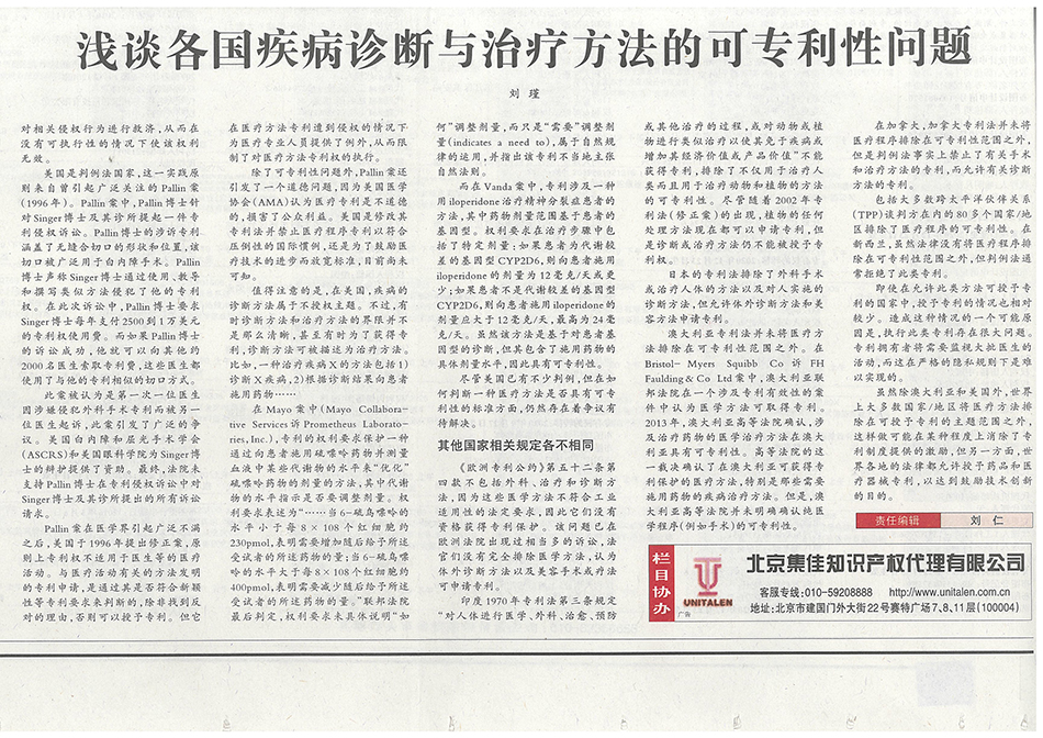 法律聲明 Unitalen Mail Box ?2016 Unitalen Attorneys at Law 版權(quán)所有 集佳知識(shí)產(chǎn)權(quán)代理有限公司 京ICP備11033076號(hào) 京公網(wǎng)安備11010502020670