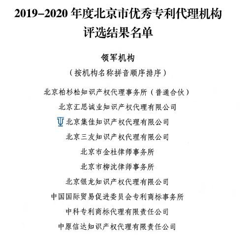 根據(jù)《北京市優(yōu)秀專利代理機構和優(yōu)秀專利代理人評選辦法》的規(guī)定,北京市專利代理師協(xié)會組織開展了2019-2020年度北京市優(yōu)秀專利代理機構和優(yōu)秀專利代理師評選工作,經(jīng)各機構申報推薦、初審、專家評審、理事會審議以及名單公示等環(huán)節(jié),最終評選出20家北京市優(yōu)秀專利代理機構和49名北京市優(yōu)秀專利代理師。