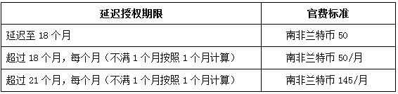 根據(jù)前述細(xì)則第45條可知,申請(qǐng)人可以請(qǐng)求將南非專利的授權(quán)周期延長(zhǎng)至自申請(qǐng)日起18個(gè)月,且有機(jī)會(huì)繼續(xù)延期。根據(jù)實(shí)踐可知,通常來(lái)說(shuō),建議申請(qǐng)人首次延遲授權(quán)的周期為自申請(qǐng)日起15個(gè)月。這樣是因?yàn)槟戏菍@ㄓ幸粋€(gè)基本的授權(quán)期限要求:根據(jù)南非專利法第40款的規(guī)定,專利申請(qǐng)應(yīng)在自申請(qǐng)日18個(gè)月內(nèi)授權(quán),超過(guò)18個(gè)月,專利申請(qǐng)未被授權(quán)就應(yīng)視為失效;根據(jù)南非專利法第40(3)款的規(guī)定,南非專利申請(qǐng)超過(guò)18個(gè)月未被授權(quán)卻未被視為失效的原因之一可以是延遲的原因并不是由于申請(qǐng)人的原因,而是因?yàn)樵谏暾?qǐng)人提出延遲授權(quán)請(qǐng)求后,南非專利注冊(cè)處處長(zhǎng)在收到費(fèi)用后給予了一個(gè)不超過(guò)3個(gè)月的延期或者南非專利注冊(cè)處處長(zhǎng)在申請(qǐng)人說(shuō)明理由(good cause)并繳納費(fèi)用后,給予了進(jìn)一步的延期。根據(jù)實(shí)踐可知,南非專利局安排授權(quán)公告的周期為2至3個(gè)月,申請(qǐng)人首次請(qǐng)求延遲授權(quán)的期限為15個(gè)月,可以保證南非專利在專利法第40款規(guī)定的18個(gè)月期限內(nèi)授權(quán)公告。若申請(qǐng)人首次請(qǐng)求延遲授權(quán)期限為18個(gè)月,那么南非專利的授權(quán)周期將會(huì)超過(guò)18個(gè)月,這將涉及專利法第40(3)款規(guī)定的例外情況,且需要繳納額外費(fèi)用(具體見(jiàn)文章后附官費(fèi)表)。