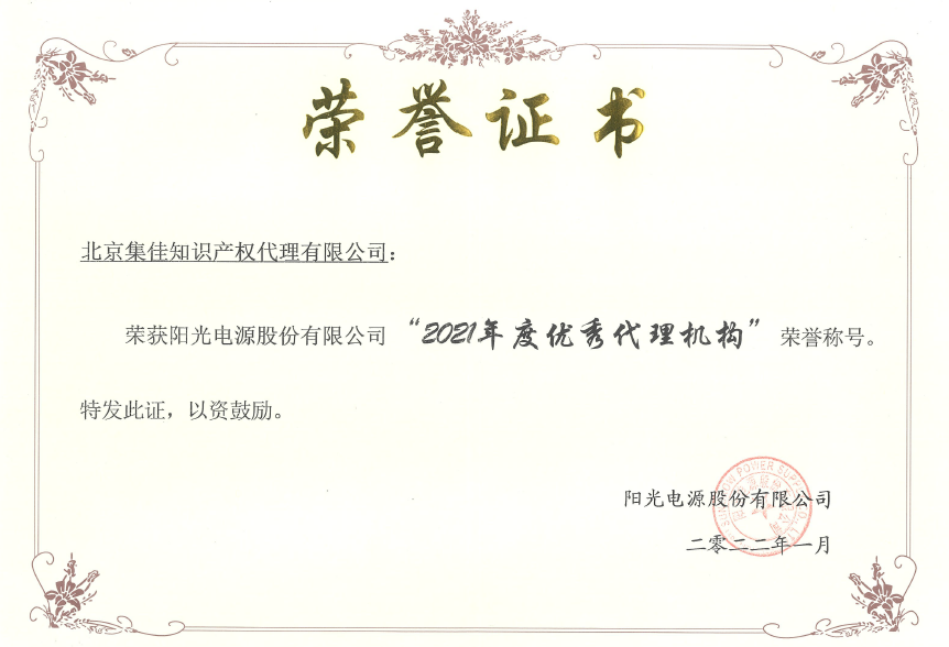 新春伊始,集佳服務(wù)再次喜獲客戶點(diǎn)贊——陽(yáng)光電源股份有限公司授予集佳“2021年度優(yōu)秀代理機(jī)構(gòu)”榮譽(yù)稱號(hào),并授予集佳專利代理師安淼、胡素莉“2021年度金牌代理師”稱號(hào),陳穎“2021年度新星代理師”稱號(hào)。