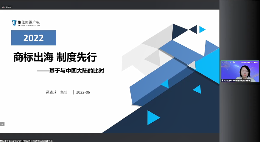譚雅琦律師以“商標出海,制度先行”為主題,為參會企業(yè)帶來一場內容充實的商標申請策略分享。她從商標申請原則、商標審查流程、商標近似及商品類似審查等方面,對中國大陸和其他國家或地區(qū)的相關制度與流程進行對比,為企業(yè)梳理在海外開展商標布局的思路;通過詳實豐富的案例分析,生動地揭示了企業(yè)了解不同國家和地區(qū)的審查流程與特點,提前進行風險防范與規(guī)避的重要性;并針對熱點國家和地區(qū)商標審查過程的焦點問題及應對方式,為企業(yè)提出了不少具有建設性的意見和建議。