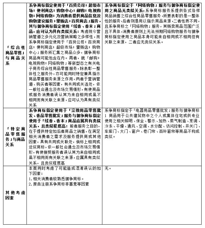 三、我國(guó)臺(tái)灣地區(qū)對(duì)于零售服務(wù)與其他商品或服務(wù)類似關(guān)系之判斷原則
