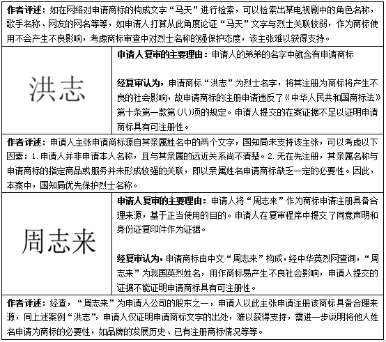綜上分析,縱然從商標(biāo)申請人的角度出發(fā),其申請商標(biāo)具有一定的合理來源,其商標(biāo)使用難以使消費者聯(lián)想到烈士名稱,但從以上案例可以看出,在商標(biāo)申請的審查階段,國知局對烈士名稱采取強保護的態(tài)度,申請人在遭遇商標(biāo)與烈士名稱沖突的情況下,需謹慎對待,從商標(biāo)來源、已取得注冊商標(biāo)的情況、企業(yè)發(fā)展及商標(biāo)使用現(xiàn)狀等多角度舉證,以期獲得商標(biāo)注冊。