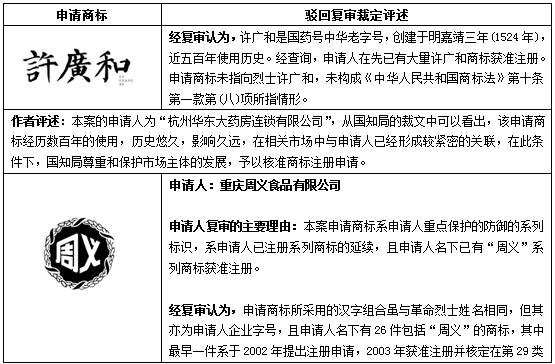 | 通過駁回復(fù)審予以核準(zhǔn)的案例 |
