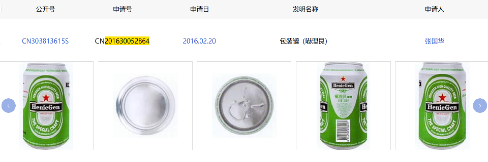 被告張國華于2016年將與喜力公司商標近似的圖案、文字作為啤酒商品的包裝物申請了201630052864.8號和201630052821.X號外觀設計專利權(quán)。