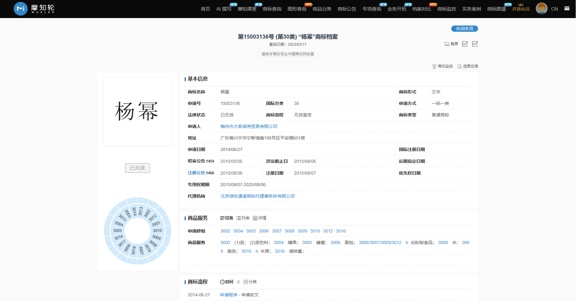 商標局認為:在案證據(jù)可以證明在爭議商標注冊申請日之前,申請人楊冪已經(jīng)具有一定社會知名度,已經(jīng)為我國相關(guān)公眾所知曉。同時考慮到爭議商標“楊冪”并非固定漢語搭配詞組,被申請人未經(jīng)申請人授權(quán),將與申請人中文姓名相同的文字申請注冊商標,該行為主觀上難謂巧合,客觀上被申請人具有不正當利用申請人楊冪姓名的知名度和影響力而實現(xiàn)經(jīng)濟利益的目的。由此,爭議商標的注冊和使用易使相關(guān)公眾認為其所標識的商品與申請人楊冪具有某種特定關(guān)聯(lián)或者由其授權(quán)生產(chǎn),從而損害申請人享有的在先姓名權(quán)。爭議商標應予無效宣告。