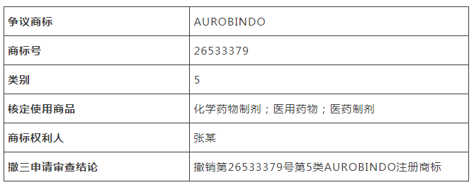 跨國企業(yè)A公司進入中國市場的過程中將其長期使用的標志AUROBINDO在中國申請注冊商標,于2021年12月提出注冊商標申請,國家知識產權局經審查后決定駁回注冊申請,理由是該商標與自然人張某在類似商品上已注冊的第26533379號“AUROBINDO”商標近似。面對自有商標在國內被搶注的情況,A公司隨即向國家知識產權局商標局提交撤銷三年不使用申請,申請撤銷張某名下第26533379“AUROBINDO”商標在第5類“化學藥物制劑;醫(yī)用藥物;醫(yī)藥制劑”等全部核定使用商品上的注冊。同時A公司于2022年3月申請駁回商標注冊申請復審,以引證商標處于撤三之中,其權利狀態(tài)不確定為由請求對本案予以緩裁。2022年9月,國家知識產權發(fā)文通知撤銷張某名下第26533379“AUROBINDO”商標。此外,A公司也在其他與公司業(yè)務相關的商品類別上申請注冊“AUROBINDO”商標,完善其在中國商標布局。目前A公司在第5類“醫(yī)藥制劑;醫(yī)用藥物;補藥;藥用化學制劑;醫(yī)用化學制劑;針劑;原料藥;生化藥品;片劑”申請的“AUROBINDO”商標已成功注冊。