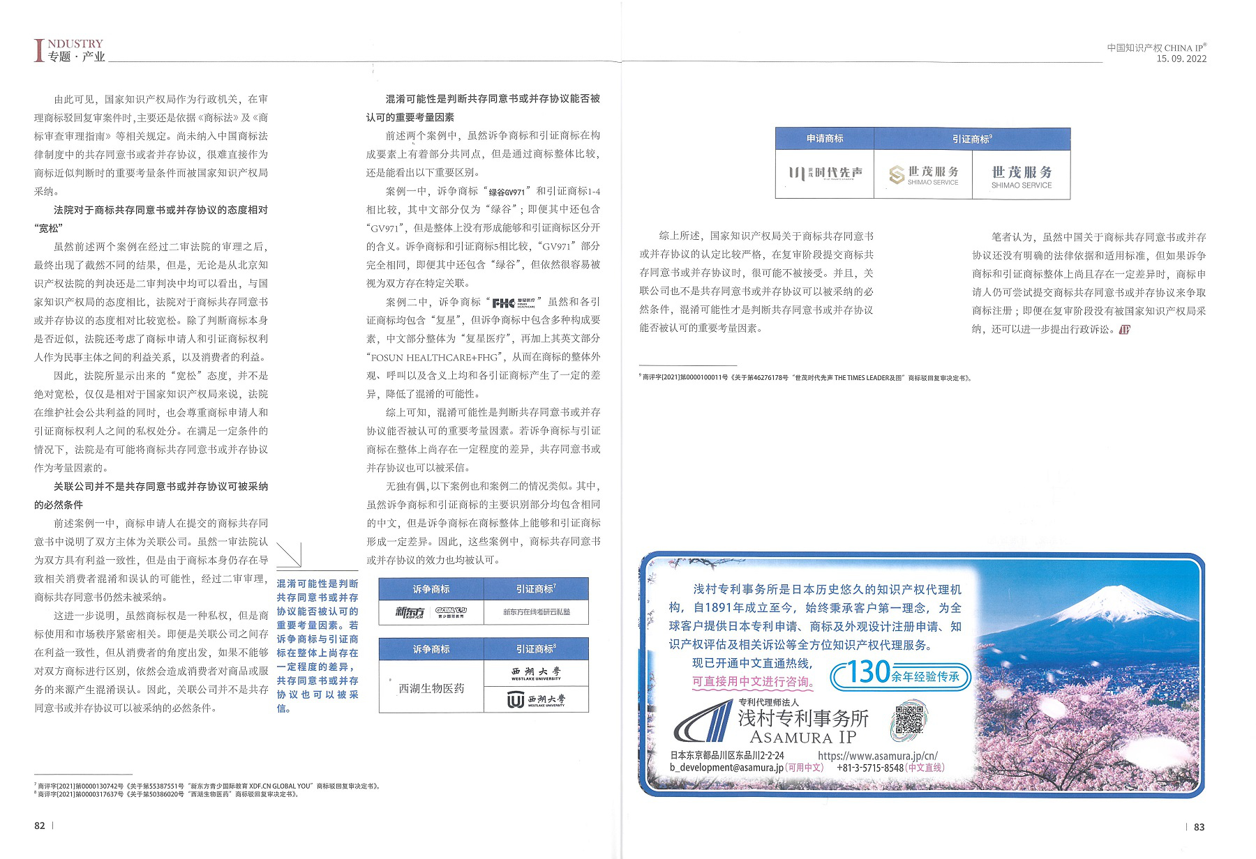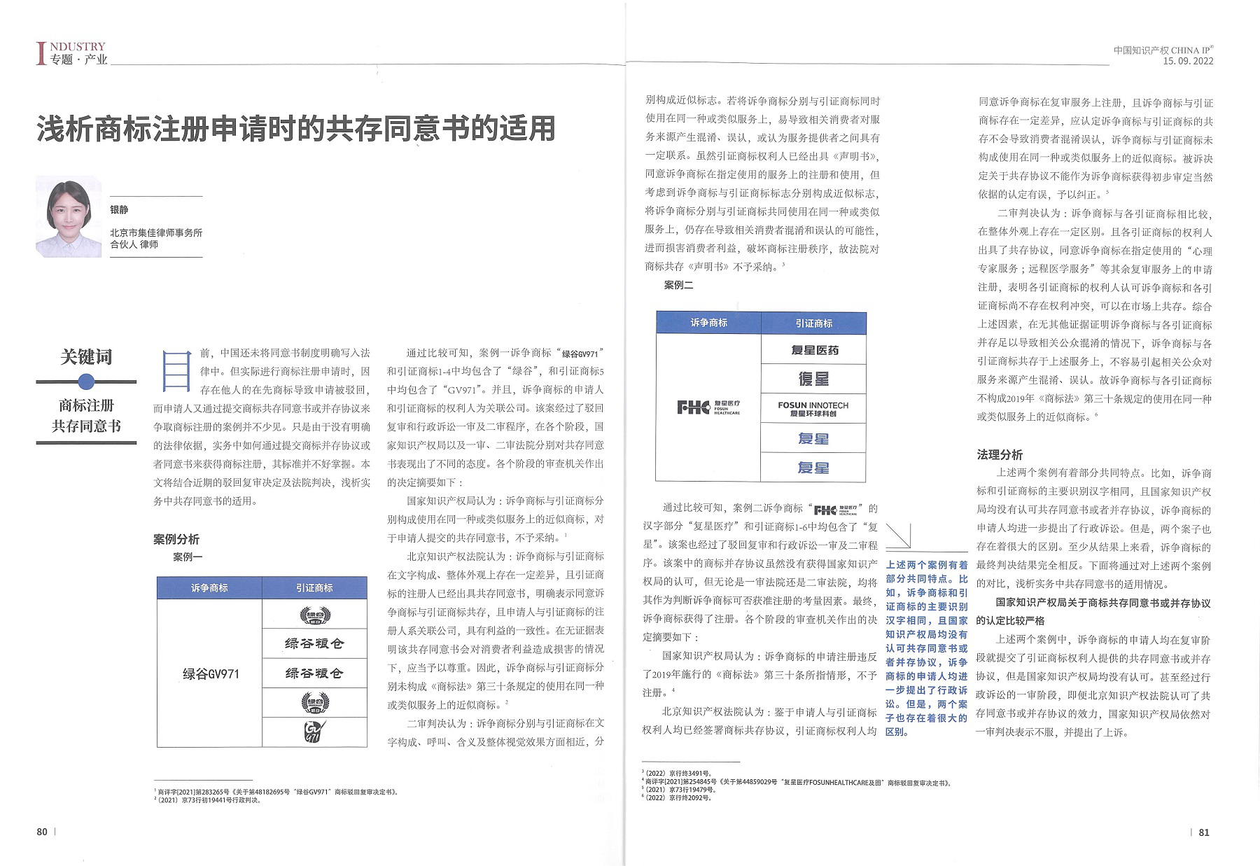 集佳文章《淺析商標注冊申請時的共存同意書的適用》在《中國知識產權》發(fā)表