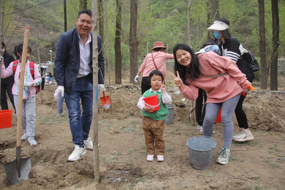 植樹現(xiàn)場(chǎng),呈現(xiàn)一片熱火朝天的勞動(dòng)景象。大伙兒個(gè)個(gè)熱情高漲,盡情投入,拿起鐵鍬、水桶等工具,植苗覆土、拍打夯實(shí)、提水澆灌;小朋友們也干勁十足,用稚嫩的小手扶正樹苗,拎著小桶小心翼翼給小樹澆水,盡管鞋子上沾滿泥土,額頭上滲出汗珠,但臉上都綻放著驕傲開心的笑容……