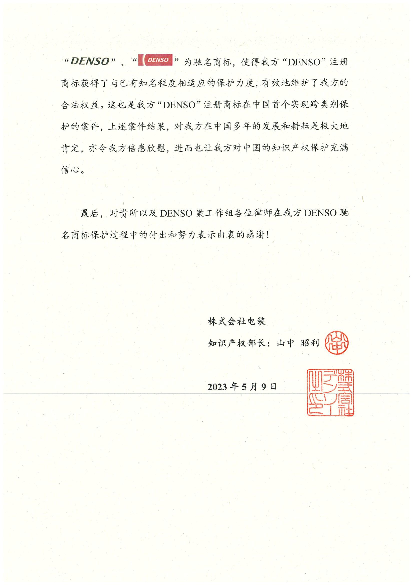 上述案件是“DENSO”注冊商標(biāo)在中國首個實現(xiàn)跨類別保護(hù)的案件,通過該案,集佳成功代理客戶使其“DENSO”注冊商標(biāo)獲得了與已有知名程度相適應(yīng)的保護(hù)力度,有效地維護(hù)了客戶的合法權(quán)益。