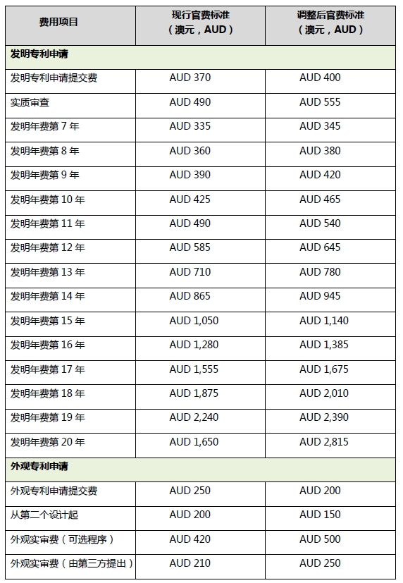 澳大利亞知識產(chǎn)權(quán)局每四年會針對官費進行一次調(diào)整,目前已在其官網(wǎng)公布了實施草案(Draft cost recovery implementation statement 2024-2025)并向公眾征求意見。據(jù)悉,澳大利亞知識產(chǎn)權(quán)局將于2024年7月公布最終版的官費調(diào)整金額,調(diào)整后的官費標準或?qū)⒂?024年10月1日生效。
