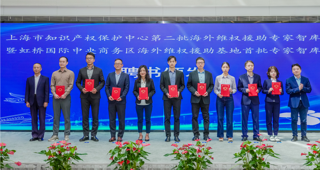 為深入貫徹長(zhǎng)三角一體化和虹橋國(guó)際開(kāi)放樞紐建設(shè)國(guó)家戰(zhàn)略,加強(qiáng)虹橋國(guó)際中央商務(wù)區(qū)海外知識(shí)產(chǎn)權(quán)保護(hù),提升區(qū)域知識(shí)產(chǎn)權(quán)營(yíng)商環(huán)境,2024年5月13日,上海市知識(shí)產(chǎn)權(quán)局、虹橋國(guó)際中央商務(wù)區(qū)管委會(huì)舉辦戰(zhàn)略合作協(xié)議簽約儀式?;顒?dòng)上,上海市知識(shí)產(chǎn)權(quán)保護(hù)中心、商務(wù)區(qū)管委會(huì)公共服務(wù)處負(fù)責(zé)人為上海市知識(shí)產(chǎn)權(quán)保護(hù)中心第二批海外維權(quán)援助專(zhuān)家(上海市第二批知識(shí)產(chǎn)權(quán)海外糾紛應(yīng)對(duì)指導(dǎo)專(zhuān)家?guī)鞂?zhuān)家)暨虹橋國(guó)際中央商務(wù)區(qū)海外維權(quán)援助基地首批專(zhuān)家頒發(fā)了聘書(shū)。