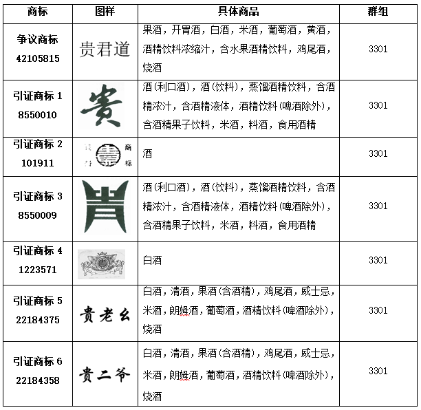 在引證商標(biāo)已經(jīng)具有一定知名度的情況下,作為同行業(yè)經(jīng)營(yíng)者的上海貴酒股份有限公司卻申請(qǐng)了上述“貴君道”商標(biāo)(以下簡(jiǎn)稱“訴爭(zhēng)商標(biāo)”)。貴酒公司依據(jù)《商標(biāo)法》第三十條,對(duì)“貴君道”商標(biāo)提出了無效宣告。國(guó)知局審查認(rèn)為:訴爭(zhēng)商標(biāo)與引證商標(biāo)構(gòu)成類似商品上的近似商標(biāo),訴爭(zhēng)商標(biāo)違反《商標(biāo)法》第三十條的規(guī)定,應(yīng)該予以無效宣告。