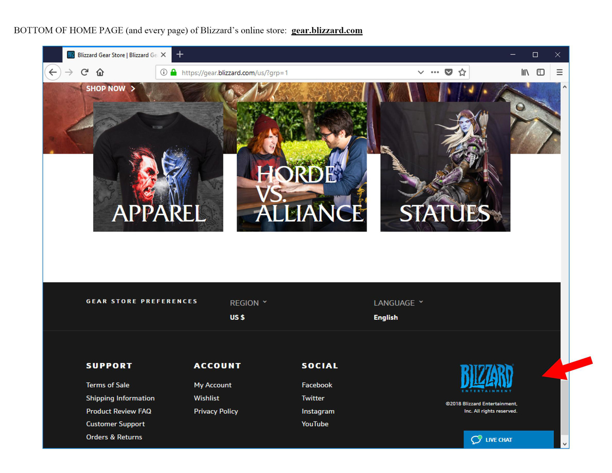 關(guān)于商標(biāo)申請(qǐng)人關(guān)注的自營商店證據(jù)能否作為第35類使用證據(jù)被美國專利商標(biāo)局接受這一問題。前文提及Blizzard面對(duì)Ava Labs提出的反訴理由曾主張其提交的使用證據(jù)是否存在瑕疵是審查員和申請(qǐng)人之間的問題,言外之意即是強(qiáng)調(diào)其提交的使用證據(jù)已被美國專利商標(biāo)局審查員認(rèn)可為合格的第35類使用證據(jù)。當(dāng)前實(shí)踐中,審查員大部分情況下會(huì)接受申請(qǐng)人在自己官網(wǎng)使用申請(qǐng)商標(biāo)零售自己產(chǎn)品的證據(jù)。作為參考,以下為Blizzard于2018維護(hù)其商標(biāo)注冊(cè)時(shí)提交的第35類零售商店服務(wù)使用證據(jù),已被接受:
