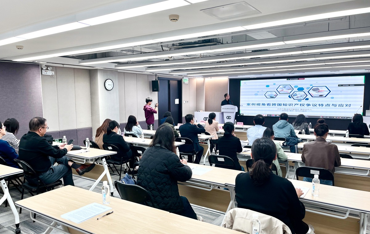 為加快推進(jìn)中關(guān)村國(guó)家知識(shí)產(chǎn)權(quán)服務(wù)業(yè)高質(zhì)量集聚發(fā)展示范區(qū)建設(shè),推動(dòng)知識(shí)產(chǎn)權(quán)優(yōu)質(zhì)服務(wù)資源助力創(chuàng)新主體提升知識(shí)產(chǎn)權(quán)創(chuàng)造、運(yùn)用、保護(hù)和管理能力,2024年10月17日,中關(guān)村知識(shí)產(chǎn)權(quán)促進(jìn)中心組織開(kāi)展第三期中關(guān)村示范區(qū)知識(shí)產(chǎn)權(quán)高端培訓(xùn)活動(dòng),集佳合伙人武樹(shù)辰律師應(yīng)邀出席活動(dòng),并發(fā)表了“從案例視角看跨國(guó)知識(shí)產(chǎn)權(quán)爭(zhēng)議特點(diǎn)與應(yīng)對(duì)”主題演講。
