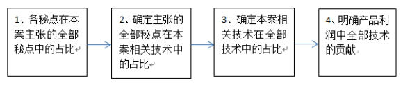 在實踐中,也可將第1步驟和第2步驟整合,直接確定本案主張并成立的秘點占本案相關(guān)技術(shù)的占比。也可以采用其他方法來計算技術(shù)貢獻率,例如,將采用權(quán)利人本案相關(guān)技術(shù)制備的產(chǎn)品與同類產(chǎn)品的營業(yè)利潤或銷售利潤進行比較,將差額作為權(quán)利人本案相關(guān)技術(shù)對產(chǎn)品利潤的貢獻,即直接得出上述第3步驟和第4步驟的貢獻率。權(quán)利人本案相關(guān)技術(shù)可能包括專利技術(shù)、技術(shù)秘密等,因此,需要再精確計算主張并成立的秘點占本案相關(guān)技術(shù)的占比。