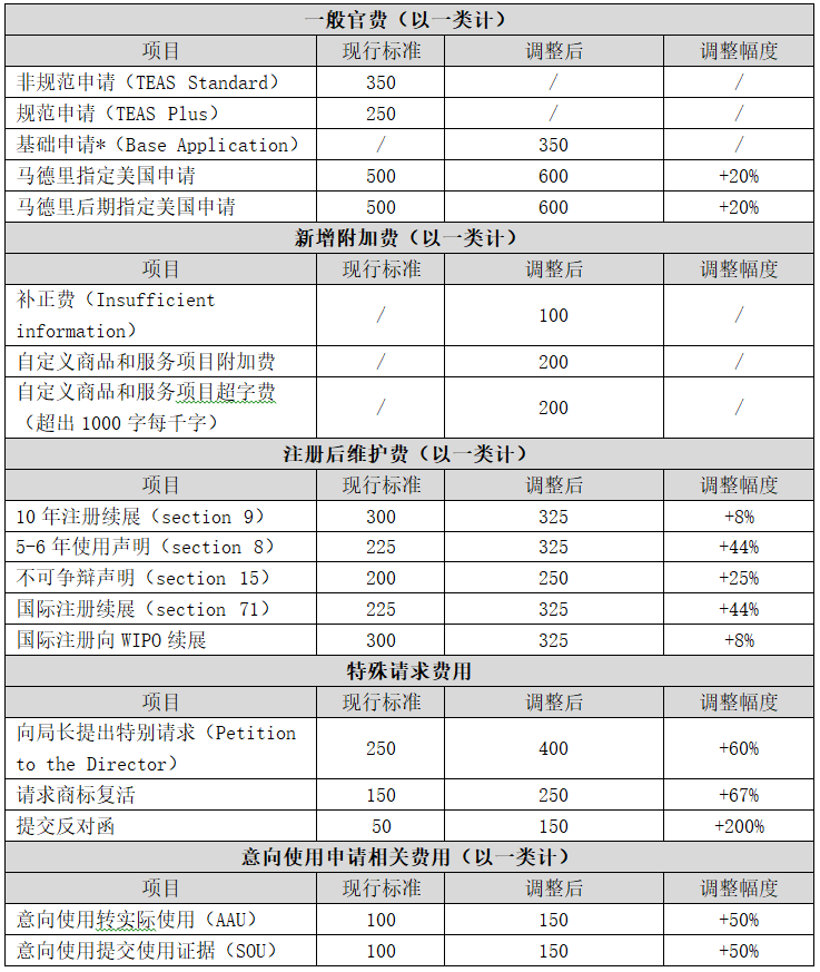 注:新的收費(fèi)制度下,由350USD/類的基礎(chǔ)申請(qǐng),取代此前的非規(guī)范申請(qǐng)(TEAS Standard)與規(guī)范申請(qǐng)(TEAS Plus)。