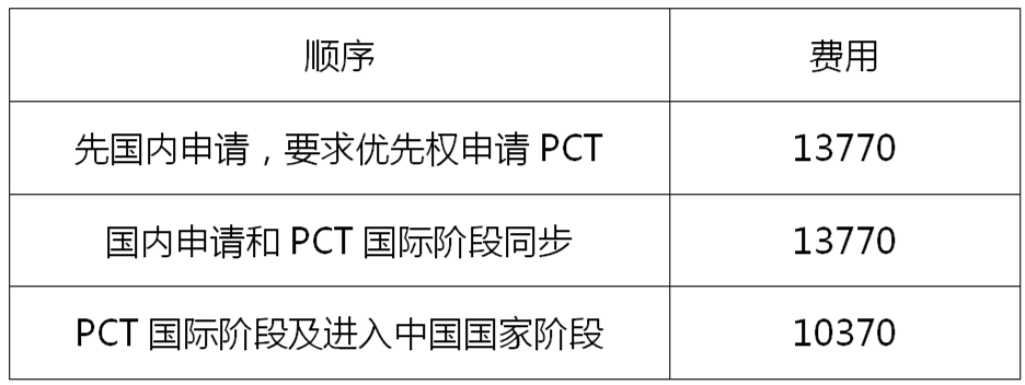 由表1和表2可知,發(fā)明專利如果國(guó)內(nèi)申請(qǐng)不涉及超項(xiàng)、超頁(yè),國(guó)際階段不涉及優(yōu)先權(quán)文件制作(或用DAS替代)、要求一項(xiàng)優(yōu)先權(quán)且不提國(guó)際初審,國(guó)內(nèi)申請(qǐng)官費(fèi)為3450元,PCT申請(qǐng)國(guó)際階段的官方費(fèi)用為 10320元(其間需注意保密審查,以確保該申請(qǐng)?jiān)趪?guó)內(nèi)獲得保護(hù)),兩階段官方費(fèi)用合計(jì)13770元。