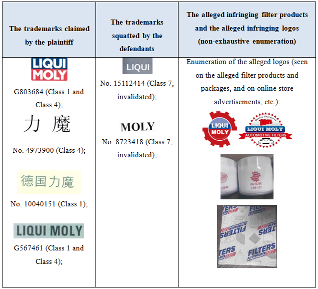 HE X-peng, the son of LIN X-xiang, incorporated Zhejiang XX Limo Automobile Parts Co., Ltd. (a sole proprietorship of natural person) on August 24, 2018, of which HE X-peng acted as the legal representative, executive director, manager, and actual controller. The foregoing company was engaged in the production, sales, and export of the alleged infringing filter products, which products were sold in both online (such as 1688 stores) and offline forms and exported to Kazakhstan and other countries and regions. Meanwhile, the company committed acts of false publicity, such as "German brand" and "German quality", to attach itself to the goodwill of LIQUI MOLY, and was the entity directly using the alleged infringing logos in the present case. In January 2022, following a complaint from the plaintiff, Zhejiang XX Limo Automobile Parts Co., Ltd. was administratively penalized by the Jinhua Market Supervision and Administration Bureau for infringing upon the exclusive rights of Liqui-Moly Gesellschaft Mit Bescherankter Hfatung in the authorized trademarks and goods involved in the case. The plaintiff concurrently filed a civil lawsuit with the Jinhua Intermediate People's Court to seek remedy against the defendant group's acts of online and offline infringement and unfair competition.
