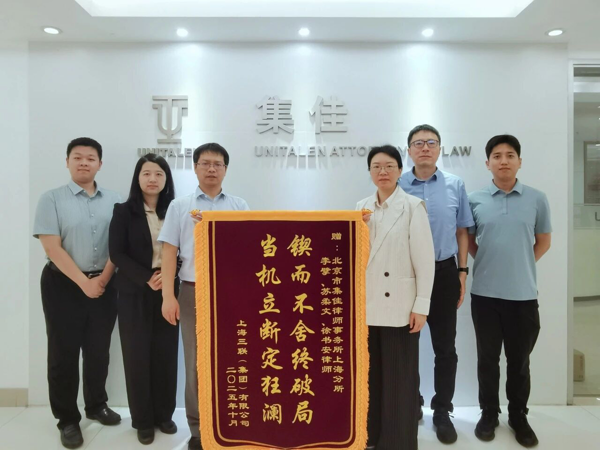 近日,集佳上海分所代理的上海三聯(lián)(集團(tuán))有限公司(以下簡(jiǎn)稱“上海三聯(lián)集團(tuán)”)與上海某公司、大豐某公司等侵害商標(biāo)權(quán)及不正當(dāng)競(jìng)爭(zhēng)糾紛案的執(zhí)行取得重大進(jìn)展,上海三聯(lián)集團(tuán)代表專程蒞臨集佳上海分所,送來表?yè)P(yáng)錦旗。