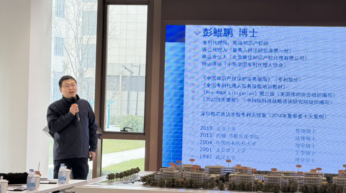 為進一步提升企業(yè)知識產權創(chuàng)造、保護和運用能力,助力企業(yè)攻克高價值專利挖掘難題、筑牢出海知識產權“防護墻”,2025年10月24日,由北京市知識產權局、北京市知識產權公共服務中心聯(lián)合主辦的知識產權服務機構業(yè)務講解系列活動在中關村(通州)醫(yī)學轉化產業(yè)園成功舉辦,活動吸引了園區(qū)二十余家生物醫(yī)藥、醫(yī)療器械方面的創(chuàng)新企業(yè)代表參加。集佳合伙人彭鯤鵬博士應邀參加活動,圍繞企業(yè)出海知識產權保護策略為科技企業(yè)講解相關知識,加強與園區(qū)企業(yè)的溝通交流。